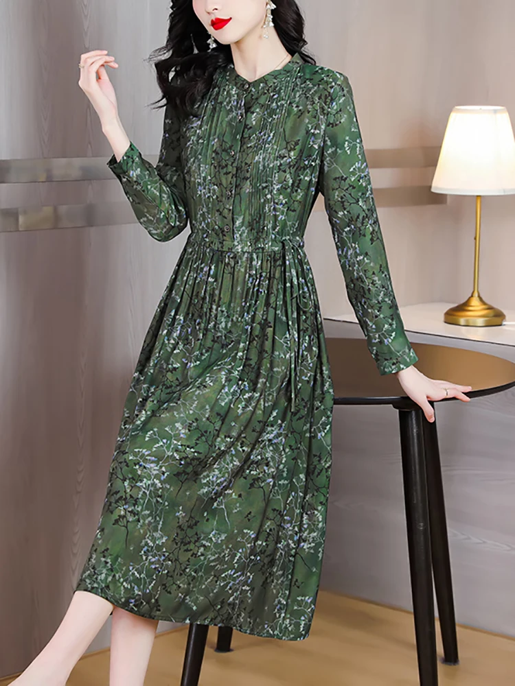 2023 Korean Fashion Green Floral Midi Dress Spring Summer New Long Sleeve Elegant Bodycon Chic Dress Women Vintage Long Vestidos Aliexpress